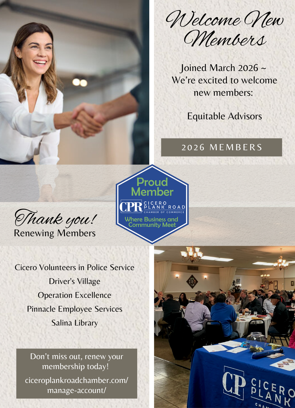 The Cicero Plank Road Chamber of Commerce includes the communities of Brewerton, Bridgeport, Cicero, Clay, Hinsdale, Mattydale and North Syracuse. The Chamber is about connecting business to business and business to community. We’re all interdependent upon each other and our success is intertwined. Read more about CPR Chamber